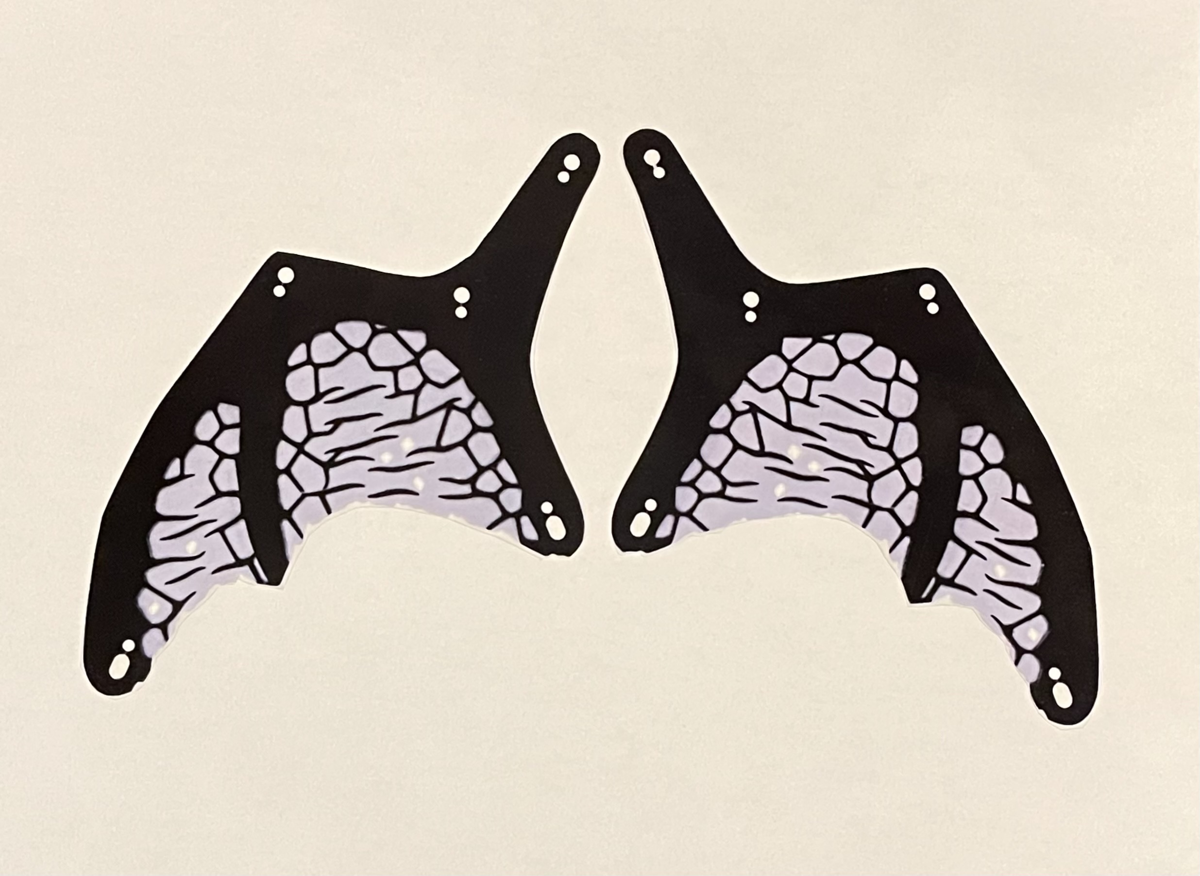 Custom machine-made plastic wings for your own Balrog build! This is a pair of plastic wings is similar to and compatible with the LEGO set 10367. The wings are cut very slightly different than Fell Beast wings to allow getting the wing over the pegs due to some small differences in the width of the parts LEGO uses to attach the wings.